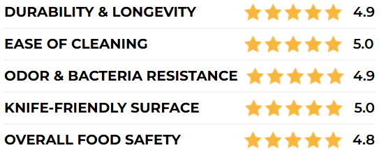 It’s non-toxic, odor-resistant, knife-friendly, dishwasher-safe, and built to last for years — without warping, staining, or absorbing anything you don’t want in your food.